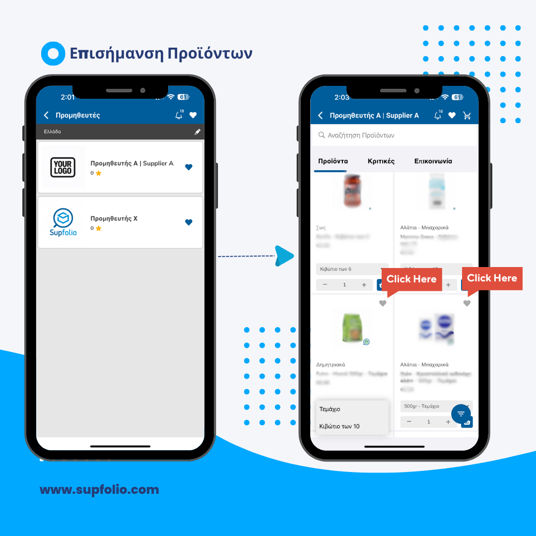 Optimize Your “Often Purchased Products” per Supplier. SupFolio makes it easy to quickly reorder the items you buy most often. Instead of searching through a supplier’s entire catalog each time, you can mark your favorite or frequently purchased products and access them instantly.